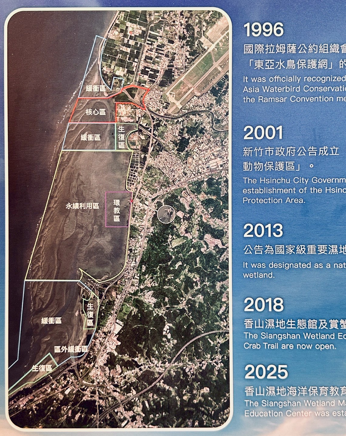 他娓娓道來加入新竹市野鳥學會的過程,以及學會多年來在金城湖與香山濕地進行鳥類調查、傷鳥救援與棲地保育的努力。作為東亞—澳洲遷徙線上的重要節點,新竹為候鳥提供關鍵的休憩與補給空間,黑面琵鷺等珍稀鳥類的到訪,更成為環境友善的重要指標。
