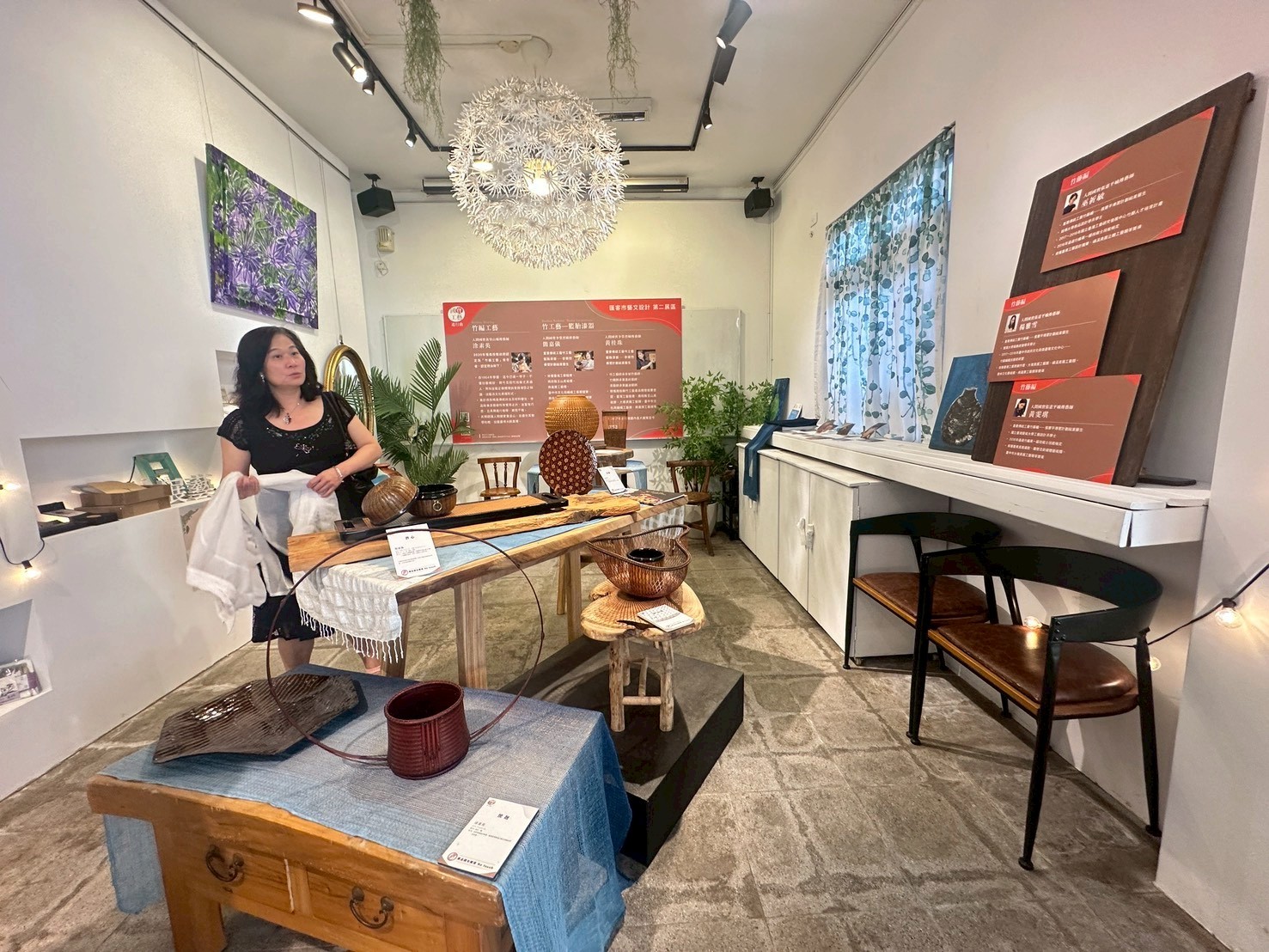 身為新瓦屋「匯客市」的總監與策展人,她更思索如何讓客家文化在當代「開花」。透過竹編窗景、纏花放大裝置、節氣花藝與在地文創選品,她不複製傳統,而是轉譯傳統,讓「敬天惜地」的精神走入日常生活。這座如城市客廳般的文化空間,不只是展覽場域,更是居民休憩、對話與創作的生活場景。
