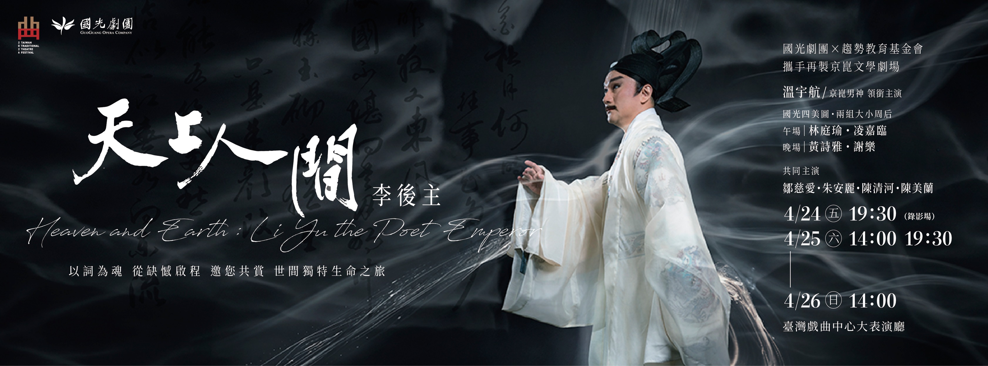 同時別忘囉~2026臺灣戲曲藝術節:國光劇團《天上人間 李後主》,2026年4月24日至4月26日三天四場,與您相約臺灣戲曲中心大表演廳,不見不散!